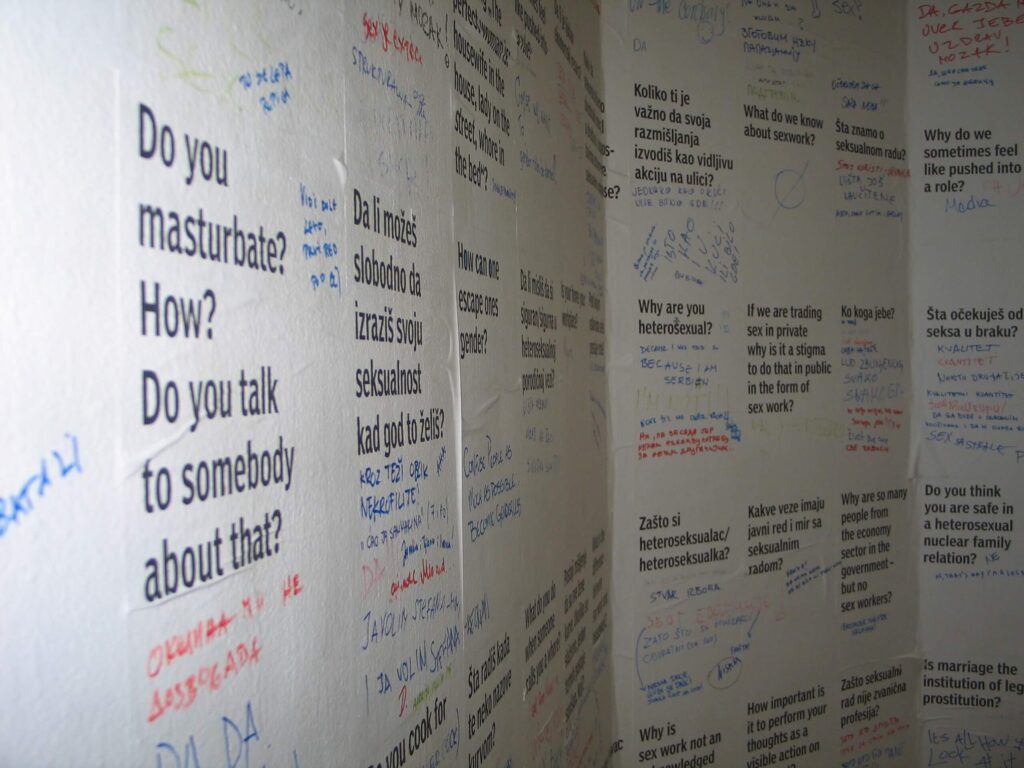 Kontekst Gallery primarily presented the work of young artists and initiated discussions on phenomena in contemporary art, culture, and society. Through exhibitions, presentations, lectures, panel discussions, and workshops, the gallery sought to stimulate and develop a critical discourse within contemporary art and culture. For us, the work of conceptualizing the gallery’s program and realizing it simultaneously represented a process of self-education, reflection, self-critique, and ongoing inquiry. Consequently, the program evolved toward a clearer and more consistent vision, shaping and defining our activities within a broader social context. Through this work—through continuous learning and interaction with both local and international artistic and, importantly, activist scenes—we came to understand our practice as creating a space for critical and political engagement through contemporary art and culture.